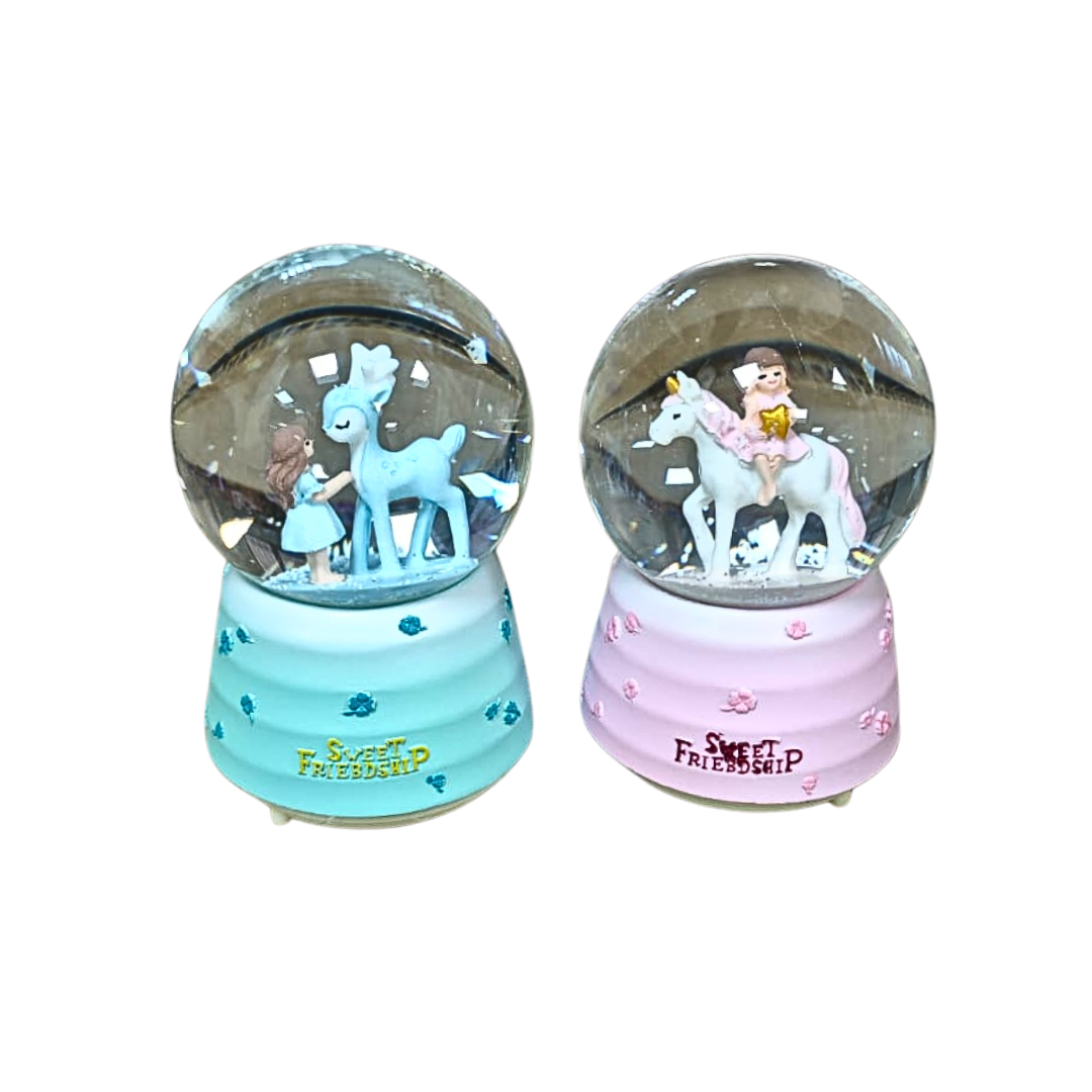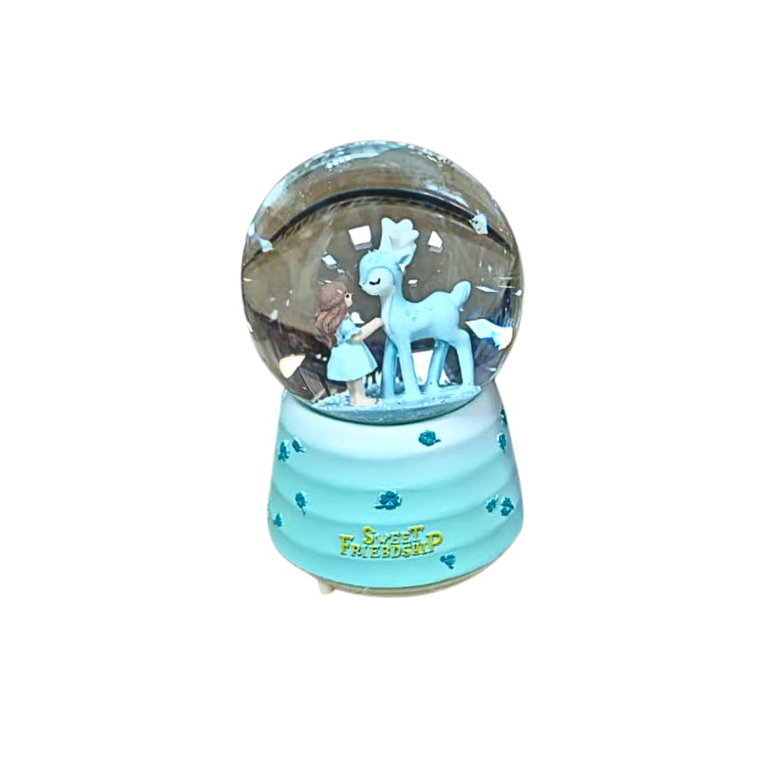 Orta Boy ışıklı Müzikli Geyikli Kız Kar küresi